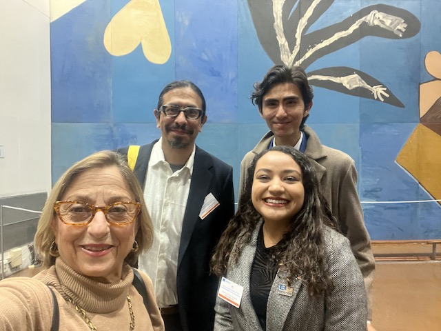 Directores de Cátedras UNESCO y estudiantes participantes de la Conferencia frente al cuadro de Guayasamín “Madres y Niños”, en la sede de la UNESCO