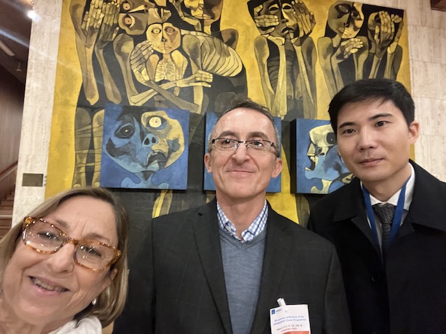 Directores de Cátedras UNESCO y estudiantes participantes de la Conferencia frente al cuadro de Picasso “The Fall of Icarus”, en la sede de la UNESCO.